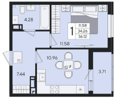 Купить 1 комнатную квартиру 36 м2 4/8 ЖК Форма.