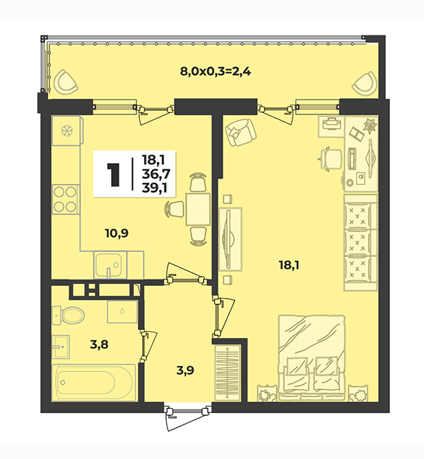 Купить 1 комнатную квартиру 39 м2 9/9 ЖК Лето.
