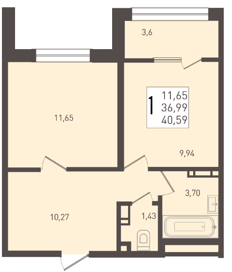 Купить 1 комнатную квартиру 40 м2 3/8 ЖК Югге.