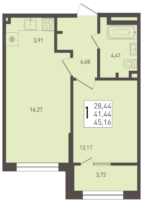 Купить 1 комнатную квартиру 45 м2 8/9 ЖК Югге.