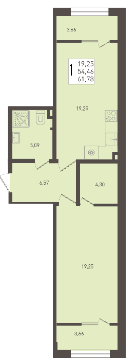 Купить 1 комнатную квартиру 61 м2 1/9 ЖК Югге.