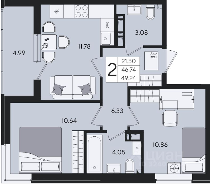 Купить 2 комнатную квартиру 49 м2 2/8 эт ЖК Форма.