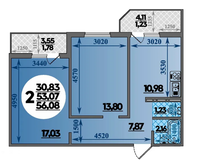Купить 2 комнатную квартиру 56 м2 13/16 ЖК 6 Квартал.