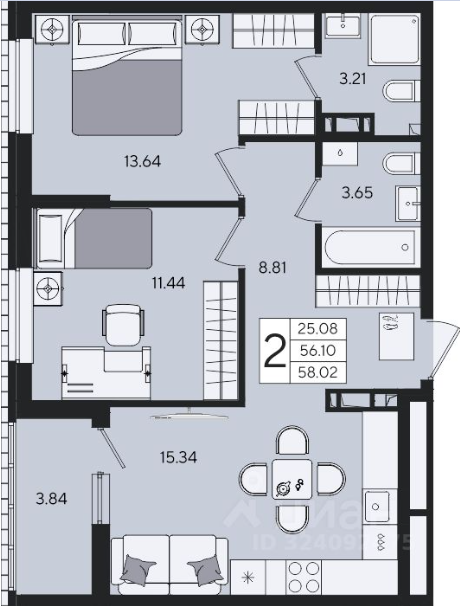 Купить 2 комнатную квартиру 58 м2 4/8 ЖК Форма.