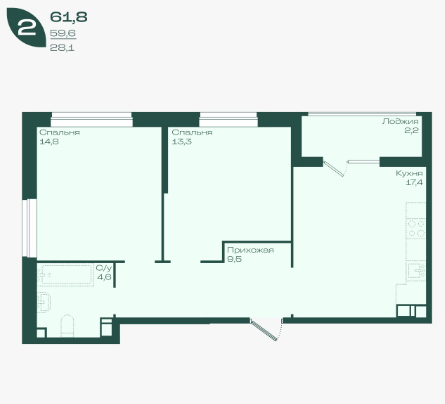 Купить 2 комнатную квартиру 62 м2 5/9 ЖК Ботаника.