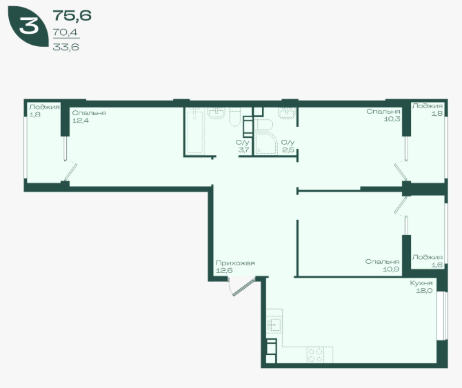 Купить 3 комнатную квартиру 75 м2 11/18 ЖК Ботаника.