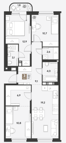 Купить 3 комнатную квартиру 81 м2 11/18 ЖК Grade.