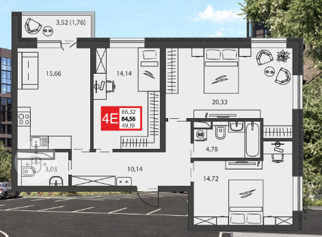Купить 3 комнатную квартиру 84 м2 3/9 ЖК К24.