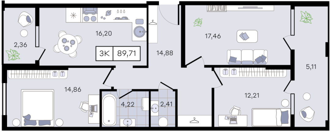 Купить 3 комнатную квартиру 89 м2 5/9 ЖК Новые Сезоны 2.