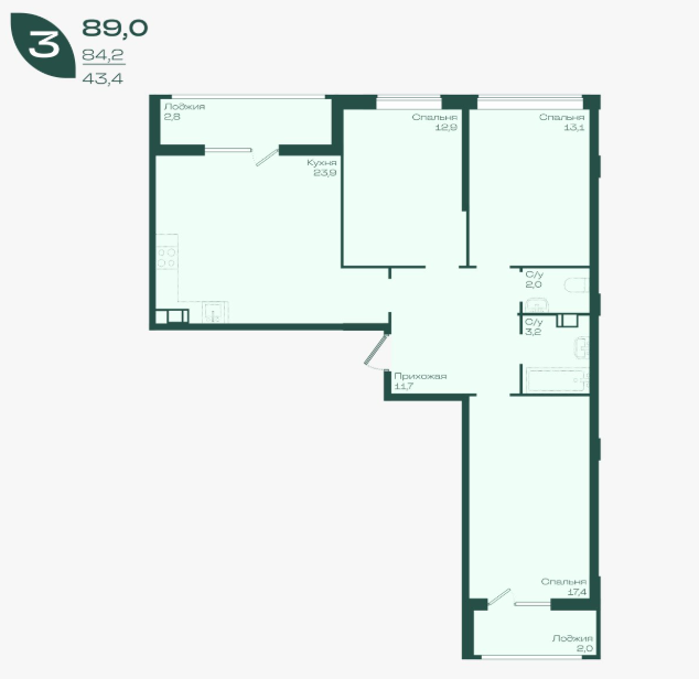 Купить 3 комнатную квартиру 89 м2 7/18 ЖК Ботаника.