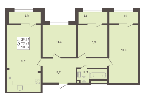Купить 3 комнатную квартиру 90 м2 8/8 ЖК Югге.