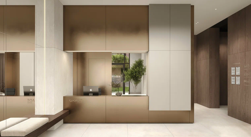 Grade-это комплекс в стиле неоклассицизма, своя обособленная инфраструктура, включающая 2 школы,4 детских сада, школу искусств, фитнес центр, поликлинику, прогулочные бульвары. Во дворах комплекса будет ландшафтное озеленение, гранд-лобби с панорамными окнами, мягкой мебелью и выдержанной палитрой, закрытый клуб с консьерж-сервисом, детский клуб, кинотеатр на 20 мест, фитнес-рум, а также колясочные, велобоксы, кладовые помещения.