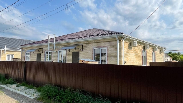 Дом в коттеджном поселке Северская. Коттеджный поселок расположен в Северском районе Краснодарского края. Этот район отличается развитой инфраструктурой, обеспечивающей комфортную жизнь. Здесь находятся многочисленные школы и детские сады, . Медицинские учреждения района включают поликлиники, больницы и аптеки. Географическое положение Северского района делает его идеальным для жизни: удобное транспортное сообщение позволяет быстро добраться до Черного моря, а также в город Краснодар.